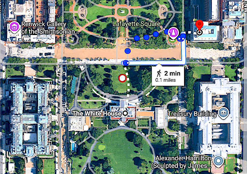 MAP: US Department of the Treasury Annex in relation to the White House.