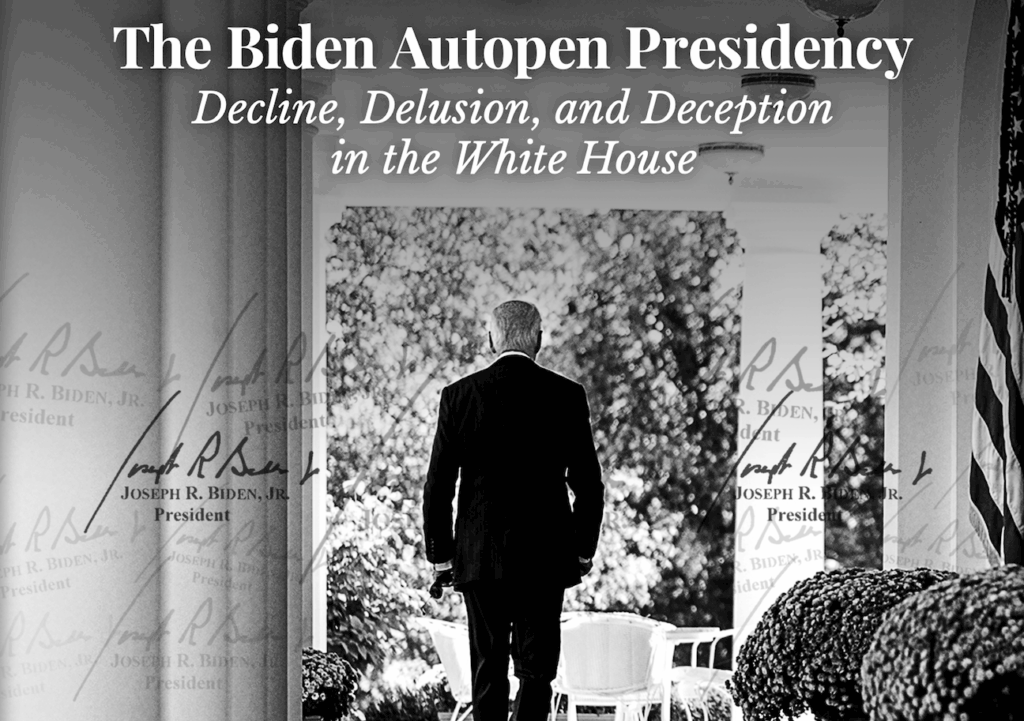 (Titles: “The Biden Autopen Prsidency: Decline, Delusion and Deception in the White House” over montage of news reports)