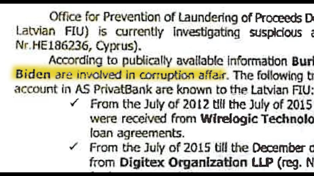 “The following transactions made to Burisma Holding Limited account in AS PrivatBank are known to the Latvian FIU,” their financial investigation unit. And what they describe is a transfer of $14.7 million dollars from Ukraine, Wirelogic Technology AS [registered in Belize], as a payment for loans.