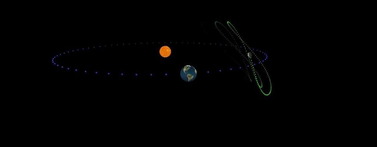 Asteroid 2010 TK7 has an extreme orbit that takes the asteroid far above and below the plane of Earth’s orbit. The motion above and below the plane is referred to as an epicycle. In addition, the asteroid moves within the plane of Earth’s orbit in what is called libration, circling horizontally around its stable point every 395 years.