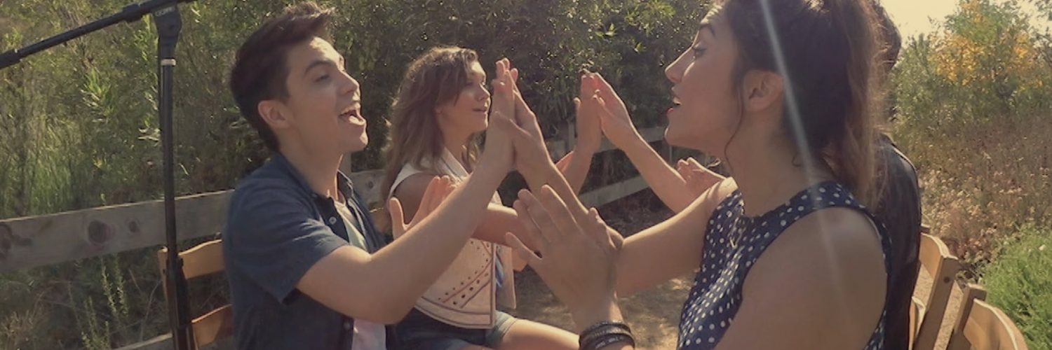 There are some super-talented humans in this video: Sam Tsui, Alex G, Kurt Schneider, Alyson Stoner. They’re all singing and patty-caking, A Cappella, in perfect rhythm and harmony, the song “I’ll Think Of You” – written by Kurt Schneider, vocal arrangement by Sam Tsui.