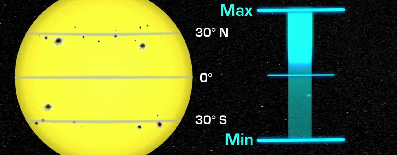 The number of sunspots increases and decreases over time in a regular, approximately 11-year cycle, called the sunspot cycle. The exact length of the cycle can vary. It has been as short as eight years and as long as fourteen, but the number of sunspots always increases over time, and then returns to low again.