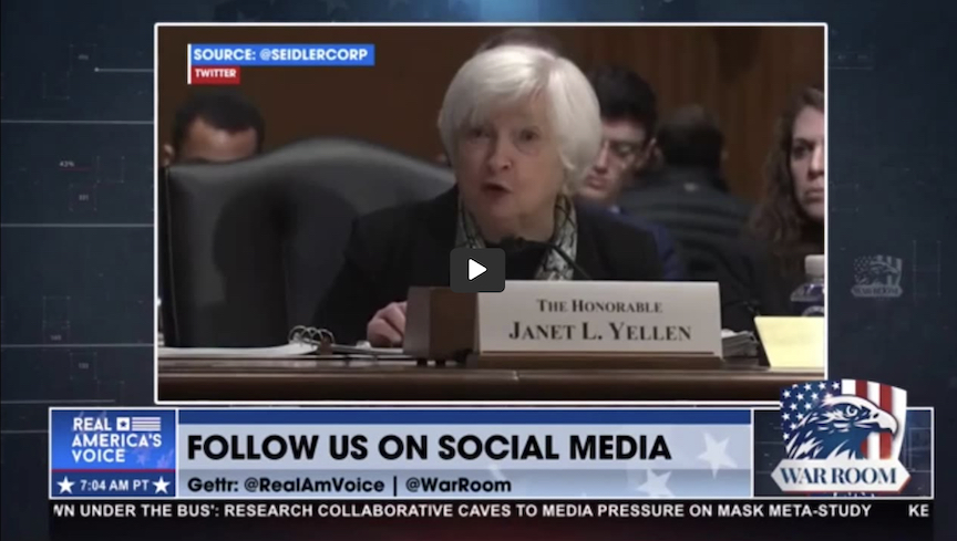 During her testimony, Secretary Janet Yellen admitted that smaller regional banks across the country will not be bailed out by the US government. Only larger banks will be bailed out like Silicon Valley Bank and their depositors from China connected to the Chinese Communist Party. You really wouldn’t believe it unless you heard it for yourself.