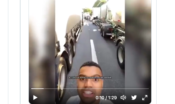 São Paulo City Councilman Fernando Holiday joined the truckers’ strike on the Dutra Highway that connects Brazil’s two biggest cities, Rio and São Paulo. He published this video on October 31st, in which he says that neither he nor the truckers accept the results of the national elections last week.