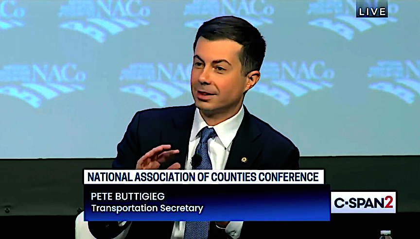 Transportation Secretary Pete Buttigieg made no mention of the Ohio train derailment while speaking at a conference this morning but did find the time to say that there are too many white people who work construction.