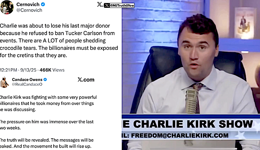 “Charlie Kirk was fighting with some very powerful billionaires that he took money from over things he was discussing.