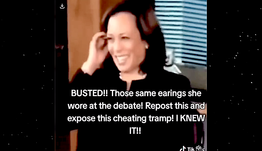 I didn't just fall off the turnip truck; I knew that the old whore was wired and I'm sure that Trump knew it too. She is not even a mediocre actor. Kamala's Tested IQ at Harvard was 78, and she revealed it at the time because she thought that the top IQ score level was 80. I had occasion to take an IQ Test in 1972, long before Woke & PC and I happen to know that anyone with an IQ of 75 or less is categorized as "Moronic". The merest possibility that we get someone with 3 points over "Moronic" is frightening. Per the Wi-Fi earrings, the only thing I don't know yet is who is on the other end. If it is indeed Hussein Obama, she must be defeated at any cost.