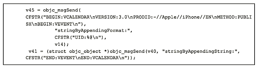 As high-value PII, the “systemd” process grabs each VCAL file from the calendar and sends it through a message: