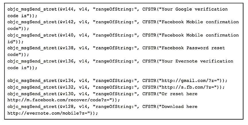 Additionally, the code is extremely modular, relative to other malware our researchers have encountered. We found common libraries and common formats with similar naming conventions. For example, the libwacalls (WhatsApp Call Library) and libvbcalls (Viber Call Library) use similar formats with similar function names and common standards. Unlike most malware authors, the code in Pegasus is clean and efficient, with evidence of professional and careful design.