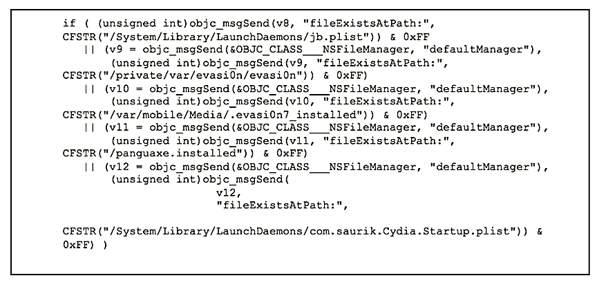The stage 3 loader also checks the device to see if it had been previously jailbroken:
