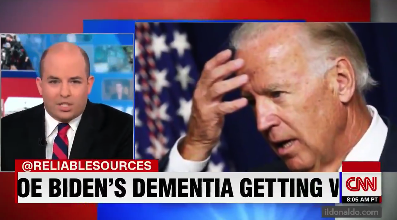 The original Brian Stelter broadcast used in this video was part of the campaign to construct Trump as having dementia. A memologist replaced some of the B-roll images in the original broadcast with images of Biden, instead.