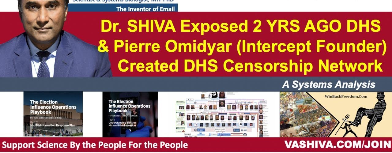 “Dr Shiva exposed in his landmark 2020 Federal Lawsuit and personally informed Fox News Tucker Carlson and Glenn Greenwald of The Intercept of his findings. They chose to do nothing. Dr Shiva is perplexed at the sudden interest now. Dr Shiva’s lawsuit discovered in detail the entire Censorship Infrastructure created by the DHS and other government agencies in collusion with Big Tech such as Twitter, and Facebook, etc. Dr Shiva’s lawsuit provides the entire DETAILED censorship architecture, beyond just DHS. Moreover, he also exposed that among others, The Intercept’s Funder, and Founder FUNDED the SAME censorship architecture that The Intercept now “bravely” exposes. Is this an ad campaign for The Intercept to win a Pultizer, while its founder continues support for the same censorship infrastructure?”
