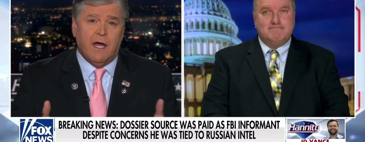 John Solomon told Sean Hannity, “[The main source] for the Christopher Steele dossier, which was funded by the Hillary Clinton campaign is a person that the FBI believes, starting in 2008 was tied to Russian intelligence. Why did they believe that? Because they had evidence he was soliciting Obama administration appointees, saying he would pay them if they would leak him classified information.
