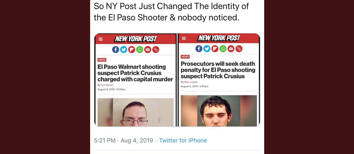 The two mass-shooters from this past weekend are being grossly misrepresented by the Fake News to push an anti-Trump agenda, in tones that can only be described as incitement to civil war. The press has lied to us so much over the past few years that there is no reason to believe anything they’re reporting about these mass-shooting events, especially with so many details coming out that contradict the scripted narrative that “white supremacy” is the greatest threat to the US.