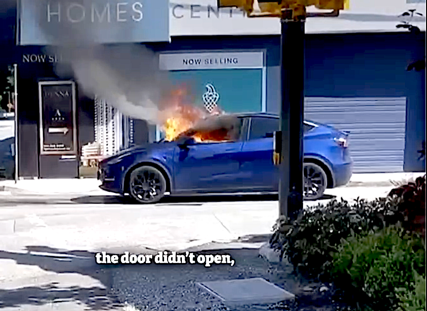 Electric Car Shuts Down, Traps the Driver Inside, then Catches Fire. Alexandra Bruce 1 year ago Luckily, he managed to escape by smashing a window before it caught fire. H/T: @WideAwakeMedia