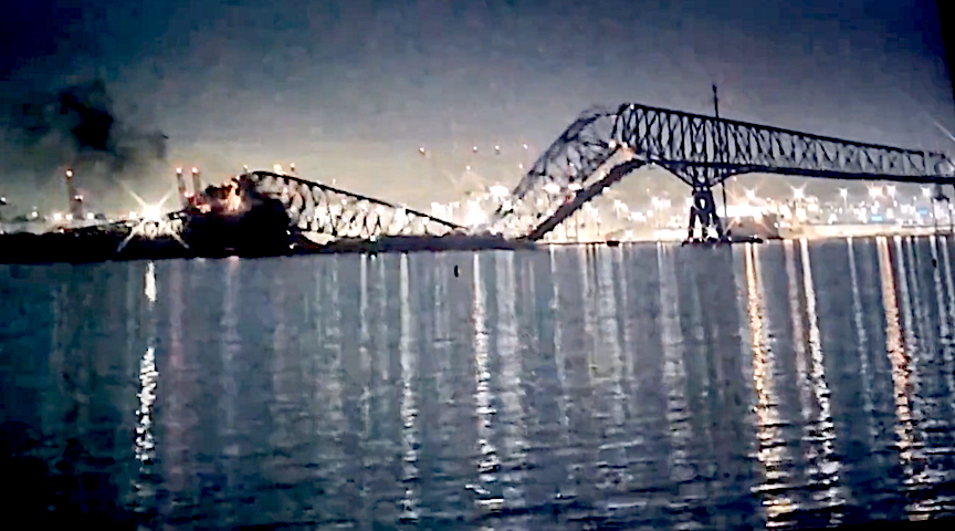 Francis Scott Key Bridge collapses after giant ship slams into pillar.