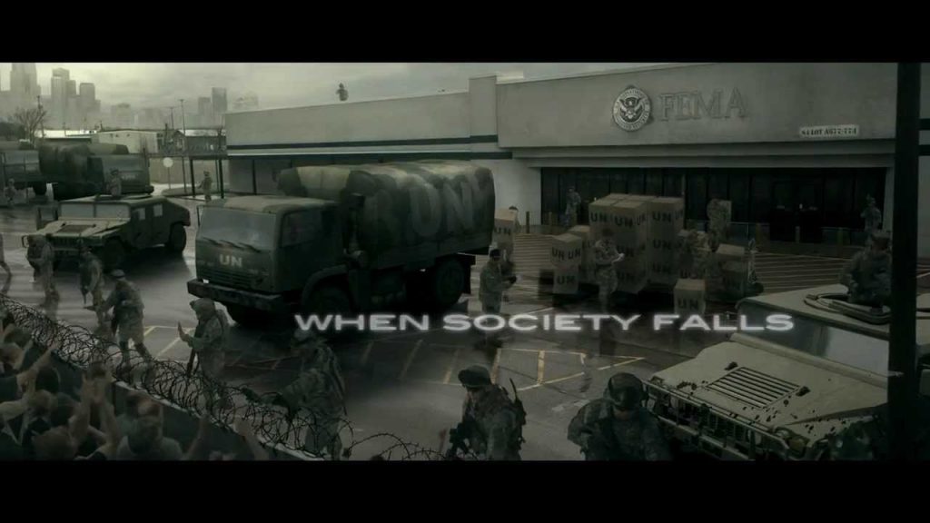 Americans, quarantined to militarized districts, become a population ripe for tyrannical control.