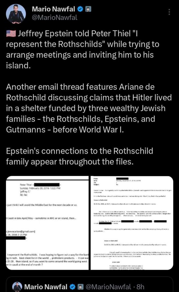 IMAGE: Jeffrey Epstein emails referring to the Rothschild Family.