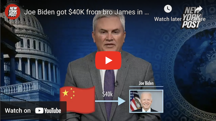 “Remember when Joe Biden told the American people that his son didn’t make money in China?” Oversight Committee Chairman James Comer (R-Ky.) said in a video posted to X.