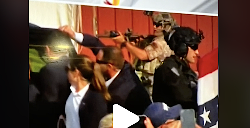 C’mon!!! The dude in camo was NOT even aiming at the SUV; the AIM was OFF to the LEFT (camo-dudes right)!! Trump got in on the right side of the SUV. I cannot believe that ANYONE (except maybe a delusional LibTard) would even SAY this, when the VIDEO is CLEAR, which way the gun was pointed (PAST the LEFT/Drivers side!). Just MAKE SHIT UP, ‘Tore’!