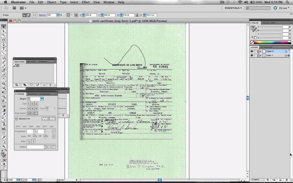 Allegedly the birth certificate was a scan. But Illustrator is revealing layers. Why is this so if the birth certificate is genuine?