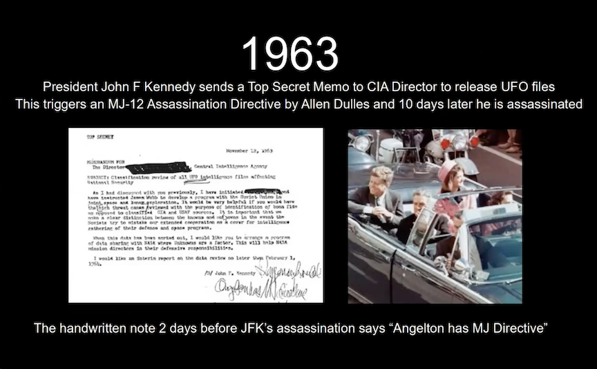 And then, Allen Dulles writes an MJ-12 Assassination Directive, which is activated 10 days after Kennedy tried to release the UFO files. And he's assassinated.