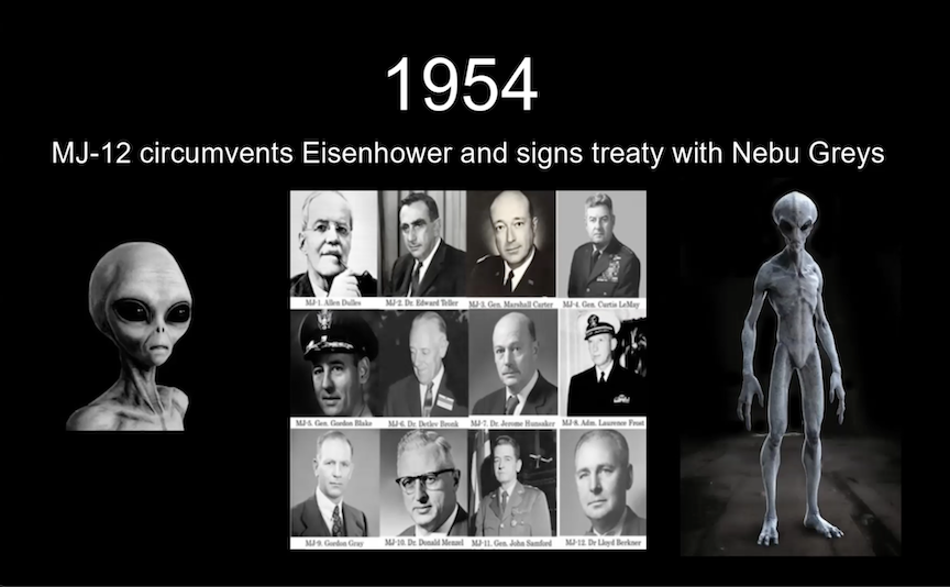 So Eisenhower wanted – there's a whole lot more to the story – but essentially, Eisenhower wanted to go along with the agreement of the Galactic Federation and heed the warning [about] the Greys.
