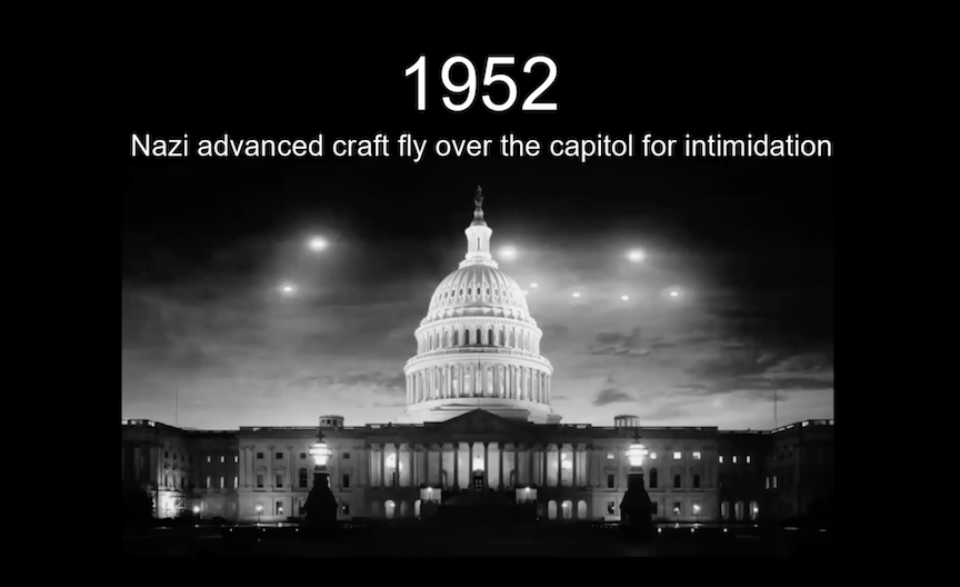 And they [the Nazis] flexed their muscles, over the Capitol building in 1952 with their craft coming up from Antarctica to intimidate the Truman and Eisenhower administration.