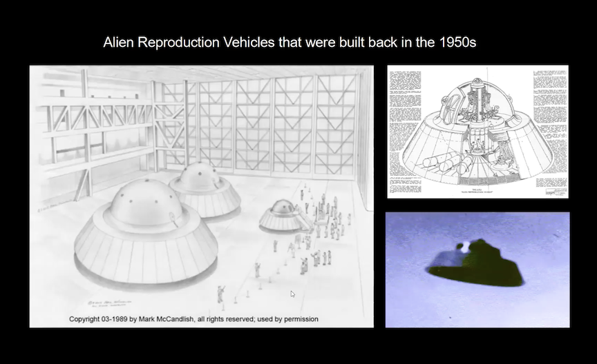 • Here are the illustrations by Mark McCandlish of these ARVs, as well as an actual military photograph of one of these craft. Mark had a technical background and he explained to Dan that this is a Tesla configuration: