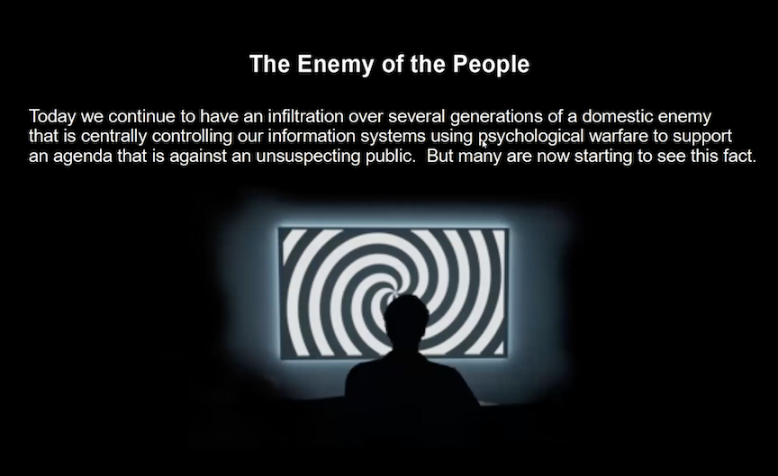 Basically, we have an infiltration of several generations of the domestic enemy, that's centrally-controlling our information, using psychological warfare to support an agenda that is against an unsuspecting public. But many are starting to see this.