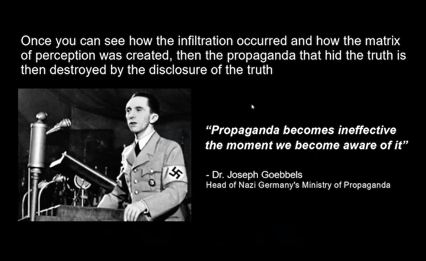 And once you can see how this infiltration occurred, and how the Matrix of Perception was created, then the propaganda that hid the truth is then destroyed by the disclosure of the truth.