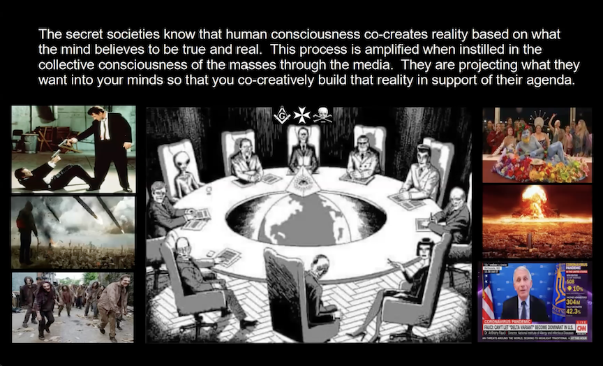 And we know that the secret society knows that human consciousness co-creates reality. And they use the media, in order to project what they want into the public mind so that we co-creatively build that reality, in support of their agenda.