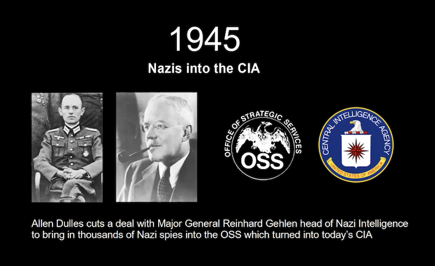 Now, Allen Dulles was infamous for this plan that they have of the infiltration. They have sympathizers in the US that worked with them. The intelligence network of Nazi Germany had all the intelligence on the Soviets, which Truman was afraid of, and so they hid the Nazi intelligence in the Bavarian mountains in these microfiche, which they brought on a trading table to bring in thousands of Nazi spies with the deal he made with General Reinhard Gehlen, head of Nazi intelligence, into the OSS, which turned into the CIA, which Dulles was responsible for actually creating – which, Truman didn't want.
