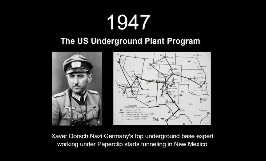 It also set up the US Air Force, and the CIA, and the National Security Act – all happened in September of 1947. Also, under Paperclip, they brought over Xaver Dorsch, Nazi Germany's top underground base expert.