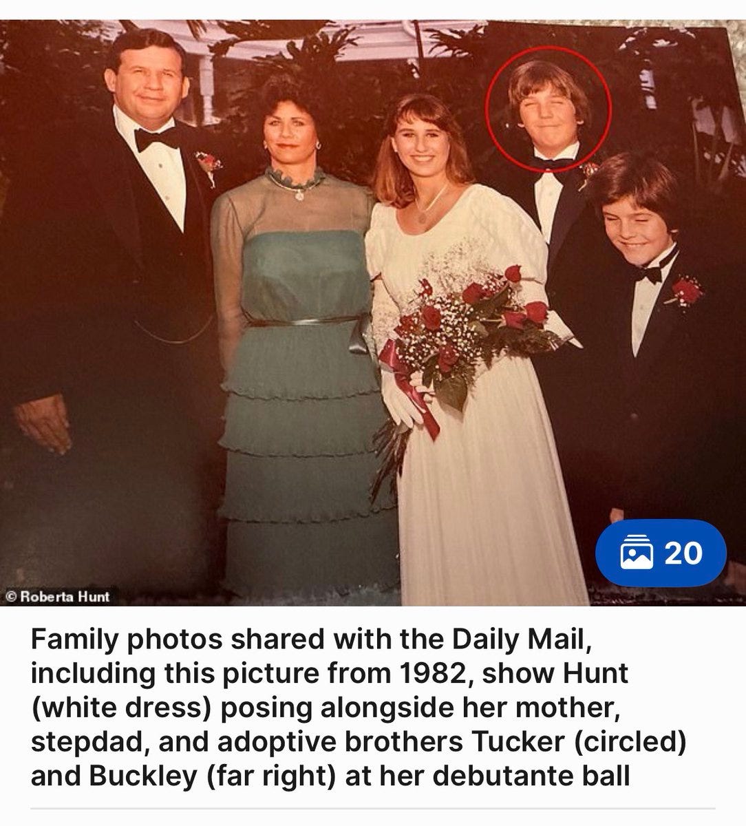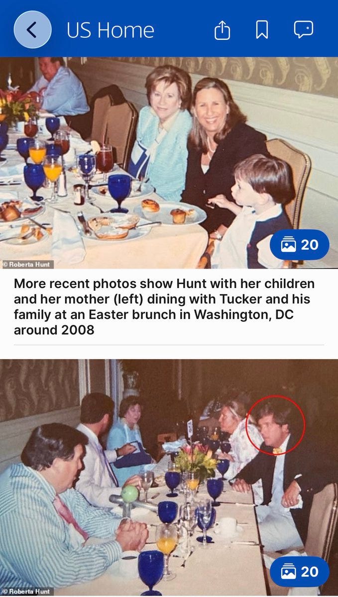Tucker’s biography doesn’t mention her once and he told The Daily Mail, “I don’t know who this person is, really,” yet she provided photos of him at her debutante ball and with their children in Washington, DC as recently as 2008.