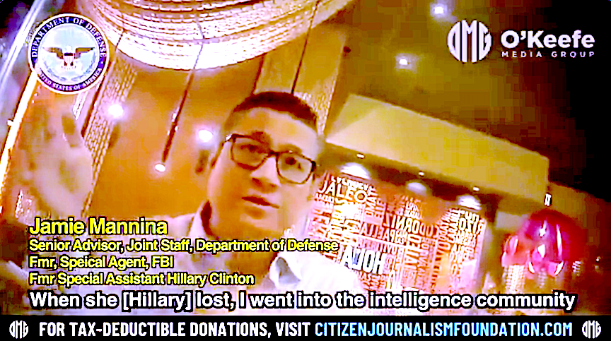 Just before President Trump was sworn-in last January, James O'Keefe's OMG team caught Jamie Mannina, a contractor at the Joint Chiefs as he gushed to this same woman about how he had been meeting with "retired generals" in the highest-security of all US Government SCIFs, known as "The Tank" at the Pentagon, in order to discuss "raising money" to "hire staff" to pursue whatever it takes to Stop Trump during his second term. He flirtatiously told her this was "Very sensitive information. We're going to have to keep it between us."