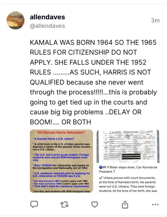 So before Pelosi would have come out of power and the baton is passed to – as she leaves office – in that window, there, at the end of 2022, between Thanksgiving and Christmas, they were going to have an "event" with Biden. Harris doesn't qualify to be president. Nancy's the one that did all the work-up on that.
