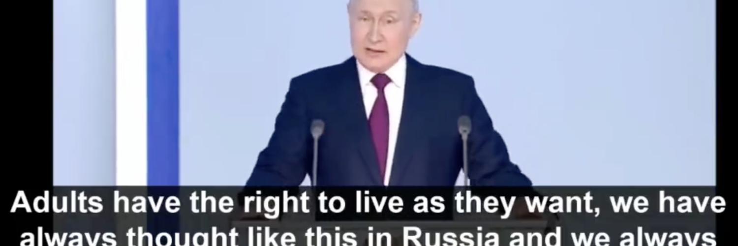 I listened to the translation of Putin’s “State of the Nation” address yesterday, and I must say, I was unexpectedly surprised. If I hadn’t known that this was Putin I would have thought that it was nearly an “America First” agenda when he talks about Religion and Morals. I wouldn’t have thought that we had so much in common. Yes, I am aware of the GloboHomo Ukraine and UN Agenda, but I realized that Putin accurately knows more about the “West” (Left) and about America than I knew about him. I’m not much of a Religionist, but I heard that his opinions of Perversion, Pedophilia, Same-Sex Marriage, and all of the other Leftist perversions were much the same as mine. I am not normally a Putin apologist but I was surprised to find that he is fighting so much more Patriotically against such obvious “Evil” than many of our “Government Leaders” and many of our so-called “Patriots” are. Without the Warmongers and the truly Unelected like Joe Biden & his Regime, I do not believe that we would have stooped to bringing America to such a dangerous level. I have no doubt that Trump can restore us both to Peace if given that chance. Hell, with a good Interpreter, I could probably do it. The standard accusations about “Preserving Democracy” for the corrupt GloboHomo advocate Ukraine and “Oh, but Putin’s a killer” cuts zero ice with me. My only reply would be “Hell, aren’t we all?”