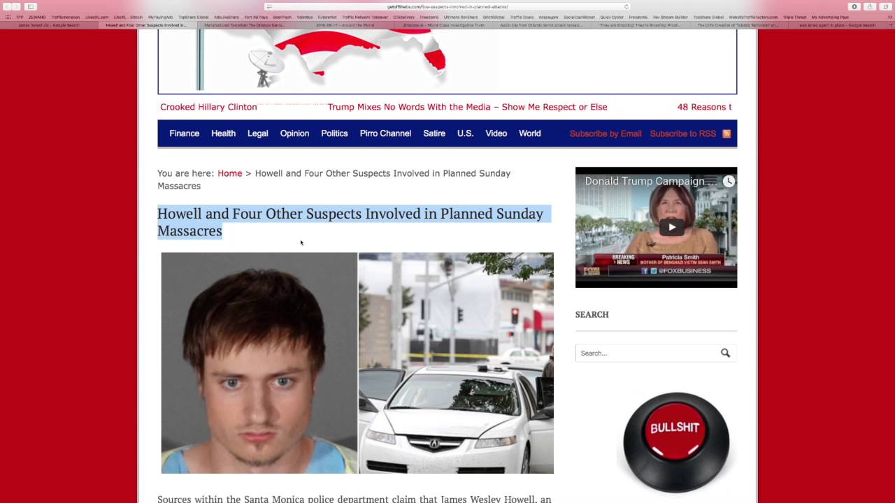 Upon arriving in LA and finding the totally cleared-out apartment of “Dan,” his co-conspirator in a planned attack against the West Hollywood Gay Pride parade – and then hearing that Omar Mateen had been killed in the Orlando Massacre he called the Santa Monica police, claiming that he needed protection from the CIA, stating that he had been “set up” and that “they are going to kill me.” Howell claimed that he was one of five people involved in a planned Sunday attack on both the East and West Coasts but was only familiar with the first names of three of the alleged five; Dan in LA and two of three suspects in Florida; Omar and Brandy.