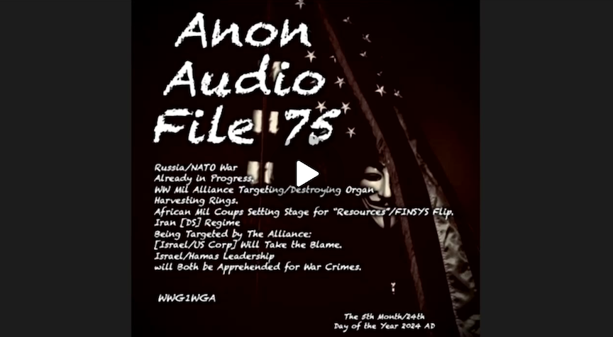 Good afternoon Patriots and welcome to the 75th audio file in the audio cast series known as the Q-News Patriot. I am the Q-News Patriot. My name is SG Anon.