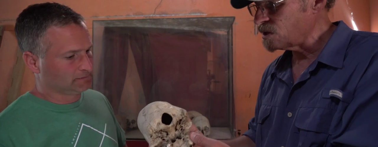 At an earthquake-damaged museum currently closed to the public in an undisclosed location in Peru, LA Marzulli and his team demonstrate how the Paracas skulls are very unlike those of Homo Sapiens, in so many ways. Besides NOT possessing a sagittal suture, which in humans separates the occipital bones of the skull into two, the occipital bone is just one big piece in the Paracas skulls. We’re also shown here that in the Paracas skulls, the foramen magnum, which is the hole at the base of the skull, where the spine connects, it is located at the very back of the occipital plate, whereas in human skulls, the foramen magnum is located toward the center of the base of the skull.