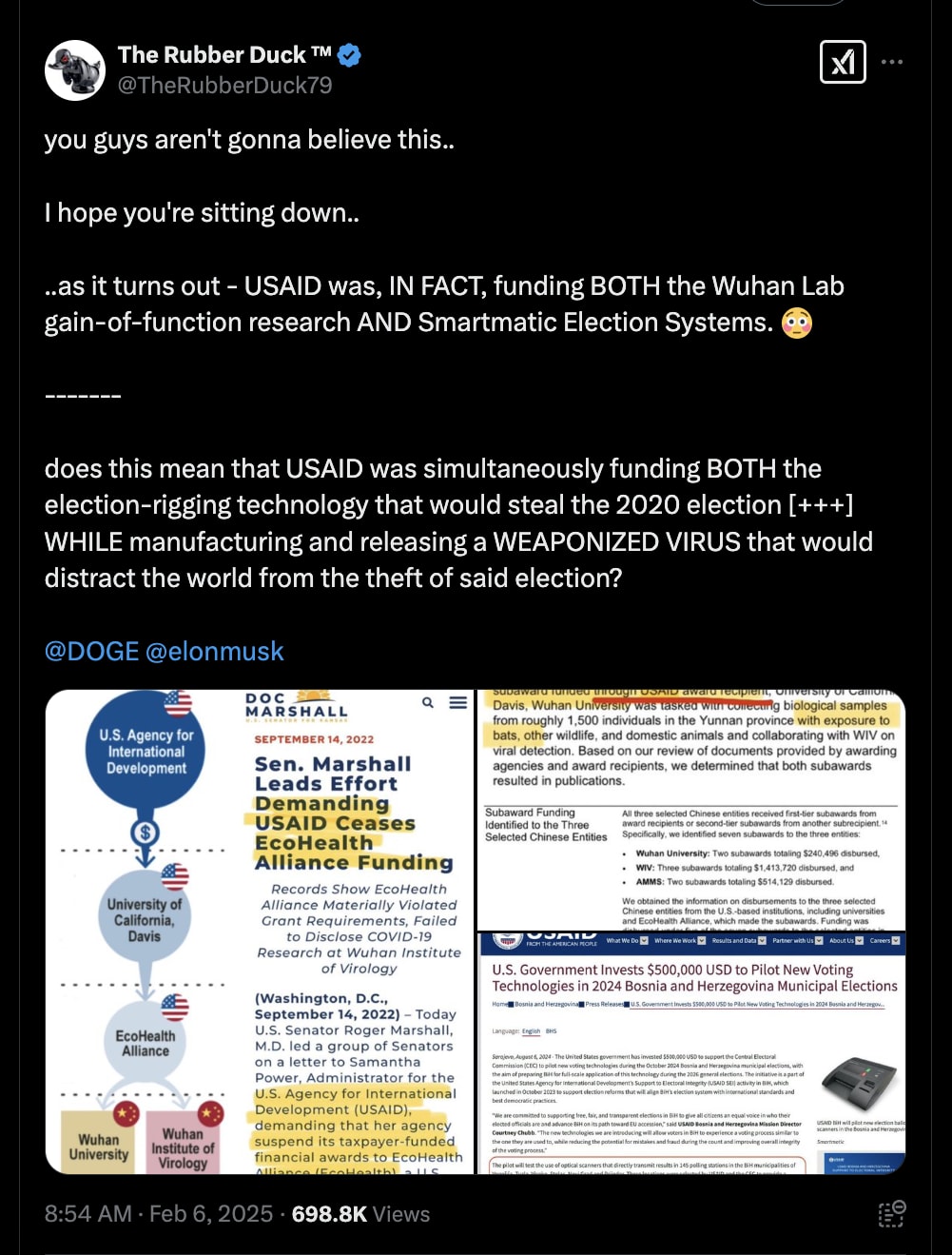 Before it was dismantled, USAID took US Taxpayer Dollars to fund democide and election theft, funding both the Wuhan Lab gain-of-function research and Smartmatic Election Systems.