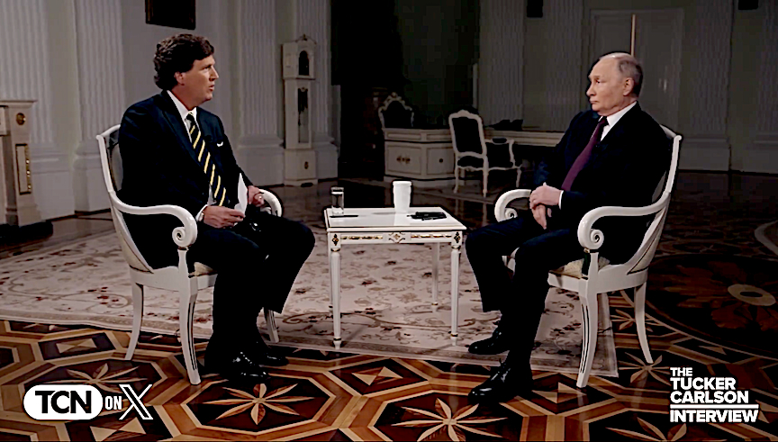 During this history-making interview, President Putin told Tucker that Russia’s Special Military Operation in Ukraine is an attempt to finish the war started by the CIA in 2014. He insists Russia did not start the war in 2022 but that it was started by the 2014 coup and subsequent bombings of the Russian-ethnic eastern provinces in the Donbas.