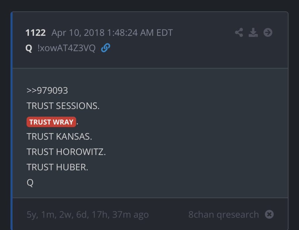 “We have to find solace in the knowledge that there ARE individuals who place the interests of the People above their own safety. I believe that this action by Christopher Wray is a self-sacrifice, because he risks everything to bring about a brighter future for all, by simply opening the door for all of us to see inside.
