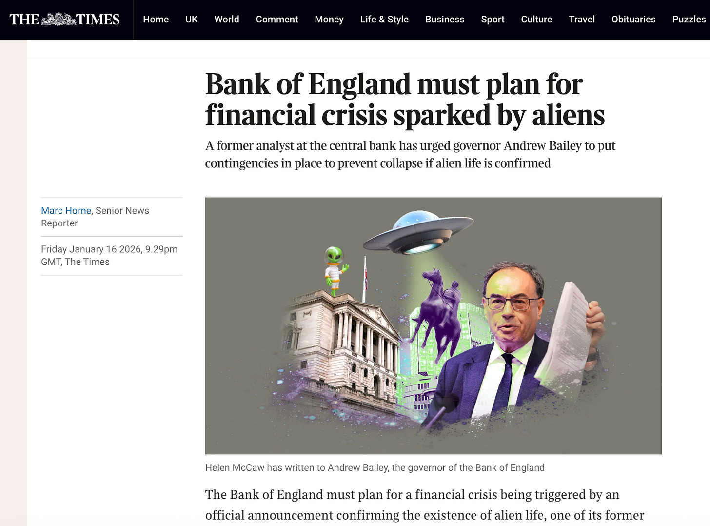 ARTICLE: “Bank of England must plan for financial crisis sparked by aliens” – Pub Jan 16, 2026