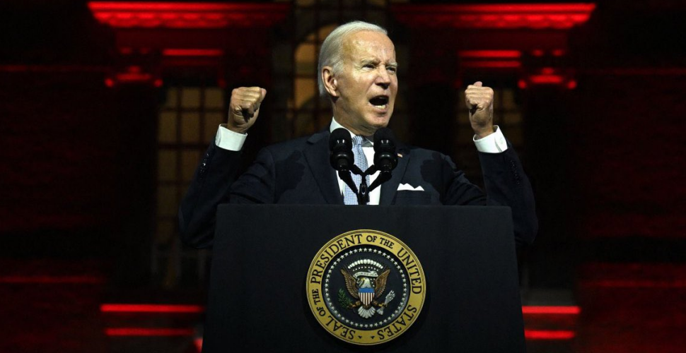 Joe Biden, who embodies desecration in human form chanted Satanic inversions to the American People about how “More Americans are working than ever” (while hecklers chanted ‘Let’s Go Brandon!’) and about how “Donald Trump and the MAGA Republicans represent an extremism that threatens the very foundations of our republic,” calling them a “Threat to this country.”