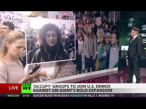 Protesters across the US are joining the worldwide rally against biotech giant Monsanto and genetically engineered crops. The mass protest comes shortly after the Senate turned down a bill that would allow states to require the labeling of GM foods –