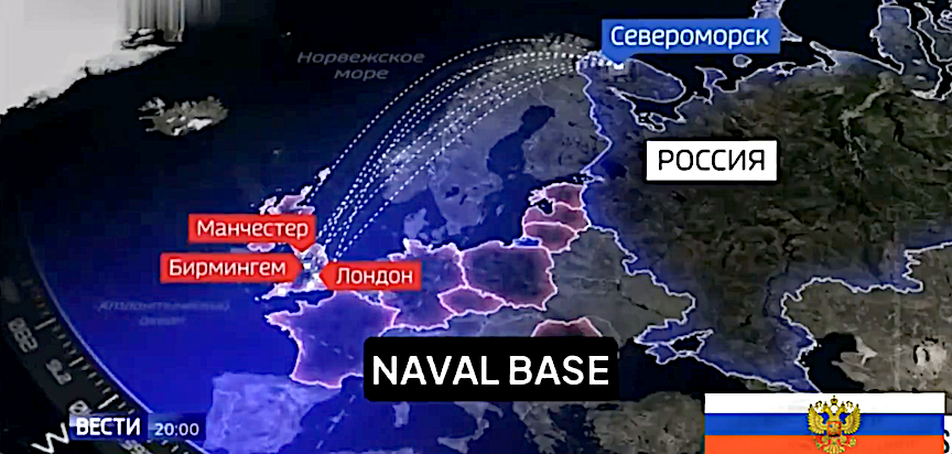 This video report is a broadcast from Russia’s VESTI (ВЕСТИ) news show, MediaPlan (Медаплан) and it clearly lays out the targets and the countries that are at risk of nuclear destruction and potential “civilizational collapse”, per Russia’s recently-revised military doctrine, which states that, “Aggression by a non-nuclear state with the participation of a nuclear state is considered as a joint attack,” making all NATO countries and the theoretically, the United States imminent nuclear targets.