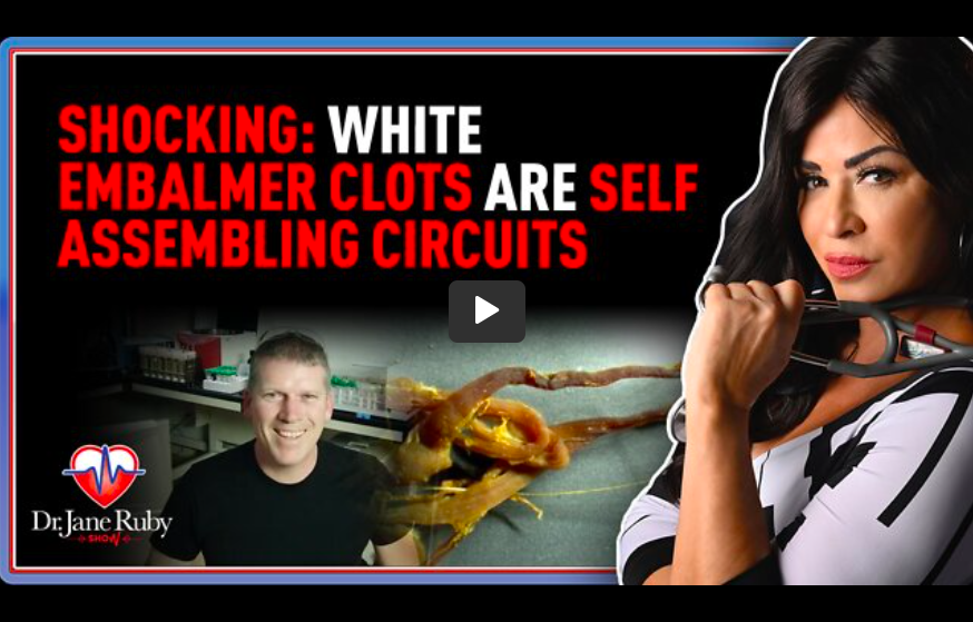 Dr Jane Ruby reports that, “Self-assembling electrical circuit material” are the results from Mike Adam’s near-final lab analysis of the rubbery white clots that are being found by morticians in veins and arteries of the prematurely-deceased jab victims all over the world.